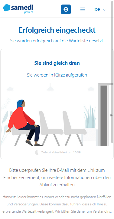 Ab sofort ist es möglich, dass Sie sich bei uns kurz vor Ihrem Termin selbstständig „einchecken“ und die voraussichtliche Wartezeit einsehen können. Den Link hierfür finden Sie